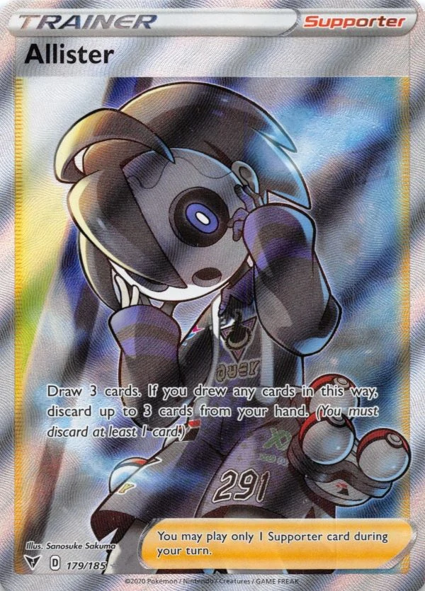 Krásná full art trenérská karta Allister, ze série Vivid voltage z roku 2020.