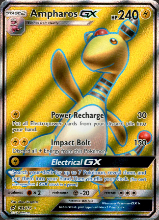 Ampharos se řadí mezi silné elektrické pokémony z druhé generace. Tato karta se řadí do kategorie ultra rare, objevila se pouze v sérii Team Up, která už dnes není běžně k zastižení.