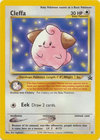 Cleffa je první vývojovou fází pokémona clefairy a clefable. Jedná se o malého roztomilého pokémona, který připomíná růžový polštářek.