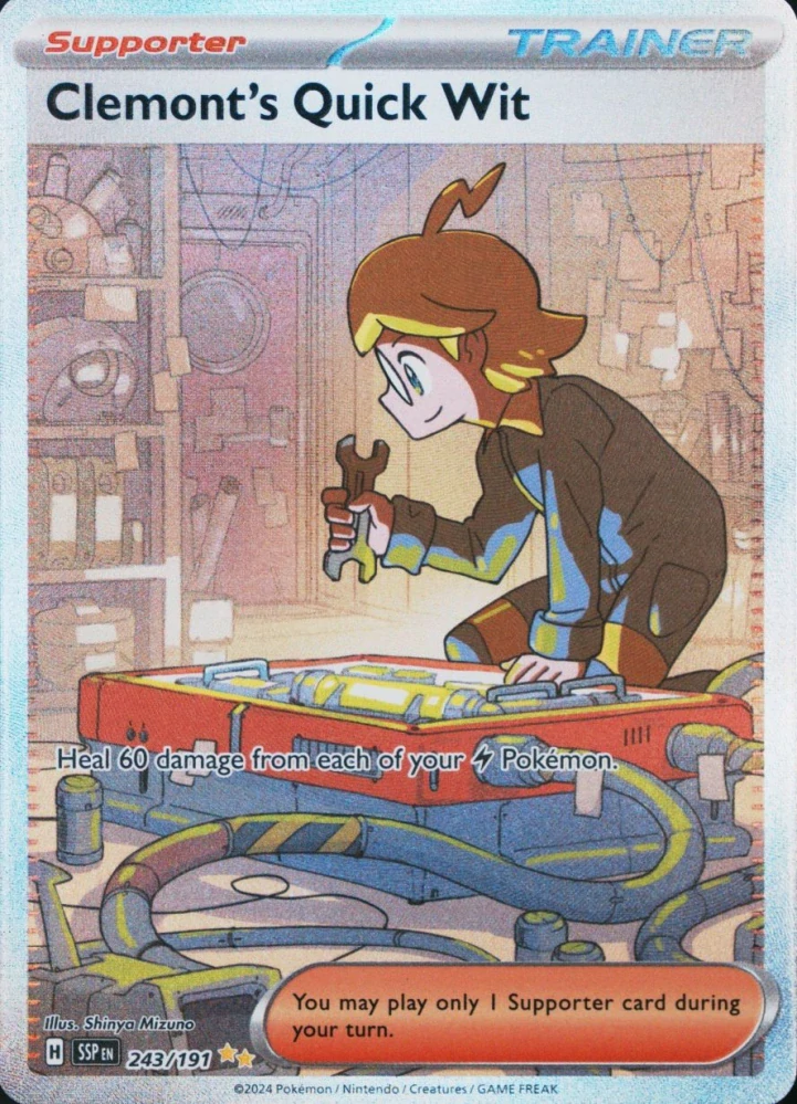 Nádherná trenérská special illustration rare karta ze série Surging Sparks.