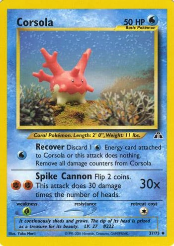 Corsola je korálový pokémon druhé generace. Drží se poblíž útesů a na dně moří.