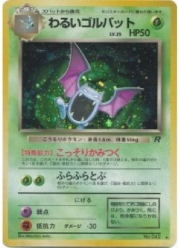 Golbat je vyšší vývojová fáze pokémona Zubat. Golbat také patří mezi letající a jedové pokémony. Pokud se Golbat zakousne do svého protivníka tak z něj okamžitě začne vysávat životní energii. Tato Holo Rare karta patří do setu Rocket Gang, a pochází z roku 2000. celý popis