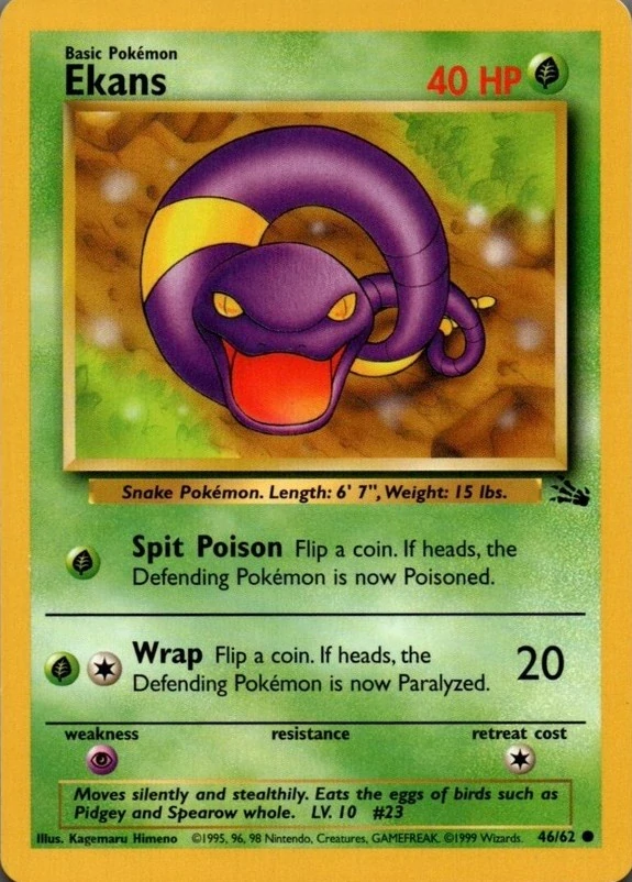 Ekans je jedový pokémon, který umí paralyzovat svého nepřítele.
