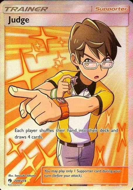 Nádherná full artová trenérská karta Judge. Ze série Lost thunder z roku 2018. Tato karta již dnes není běžně k zakoupení.