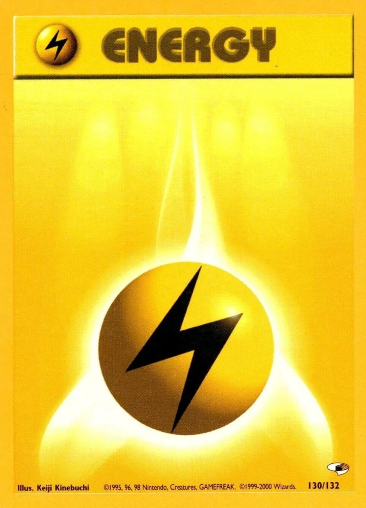 Elektrická energie ze setu Gym heroes, dnes se jich mnoho nedochovalo v dobrých stavech, jelikož energie byly nejčastěji používané karty.