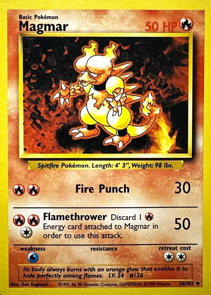 Magmar patří mezi ohnivé pokémony 1. generace. Celý povrch těla tohoto ohnivého pokémona neustále žhne a plápolá drobnými plamínky. Magmarové se údajně "rodí přímo v kráterech aktivních sopek."