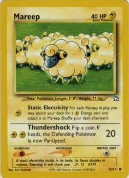 Mareep je menší elektrický pokémon, který je velice poklidný, jeho tělo je pokryto vlnou a hlava a končetiny mají modré zbarvení.