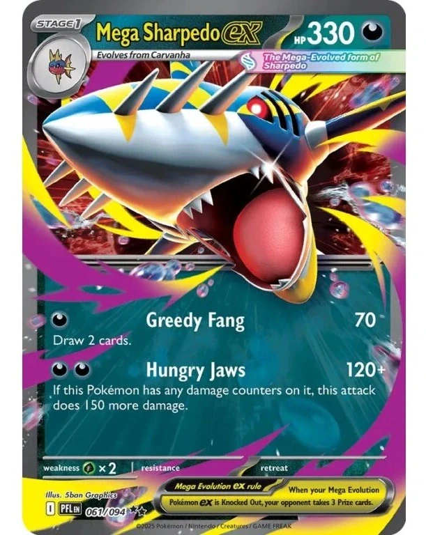 Mega Sharpedo EX ultra rare ze série phantasmal flames z roku 2025.