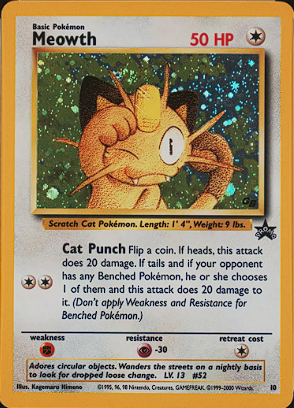 Meowth je jeden z nejznámějších pokémonů, kterého můžete znát i ze seriálu jako parťáka Jassie a Jamese, společně tvořili trio rakeťáků. Tento kočičí pokémon je velmi temperamentní.