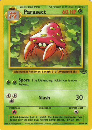 Parasect se řadí mezi hmyzí a travní pokémony z 1. generace. Parasovi na zádech rostou 2 muchomůrky, Parasect má jednu obrovskou muchomůrku, která prakticky tvoří jeho tělo. Je tak jedovatější než jeho předchůdce.