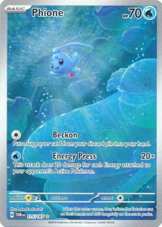Phione je mýtický pokémon 4. generace a tvoří dvojici společně s pokemonem Manaphy společně tvoří takzvané Sea Guardians duo.