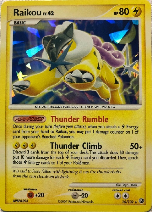 Raikou patří mezi nejsilnější elektrické pokémony, jde o legendárního pokémona z 2. generace. Tato karta patří do kategorie Secret Wonders.