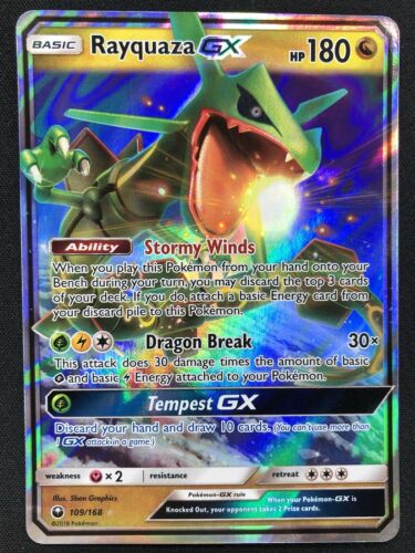 Rayquaza je nejsilnější dračí pokémon ze všech generací. Karta spadá svou vzácností do Ultra Rare