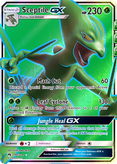 Sceptile je travní pokémon 3. generace. Tato karta spadá do kategorie ultra rare a jde ji nalézt pouze v sérii Lost Thunder, která již není běžně k dispozici.
