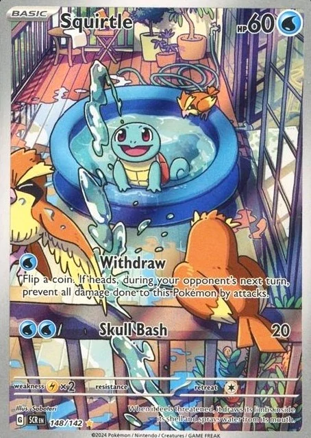 Squirtle, patří mezi nejznámější starter pokémony. Jde o vodního pokémona 1. generace. Squirtle miluje vodu. Jeho nejoblíbenější útok je vodní dělo.