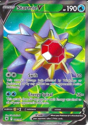 Starmie patří mezi vodní a psychické pokémony. Vyvíjí se ze Staryu. Střed jejího těla teď obsahuje všech sedm barev duhy. Její tělo může mít různý tvar, vždy, ale přísně geometricky souměrný.